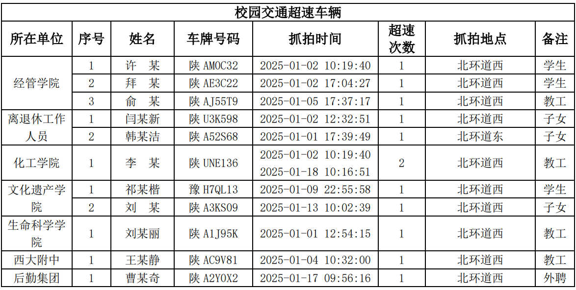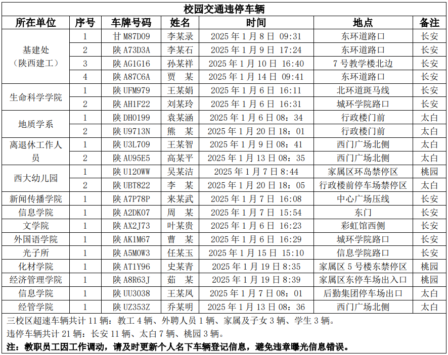 为进一步加强校园交通管理,保障校园交通安全有序,维护学校正常的教学、科研和生活秩序,切实保护师生员工的人身财产安全,根据《广发体育校园交通安全管理规定》的相关要求,现将2025年1月校园交通违章车辆予以曝光,具体要求与违章信息如下。