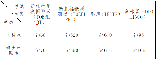 1. 英语语言成绩要求: