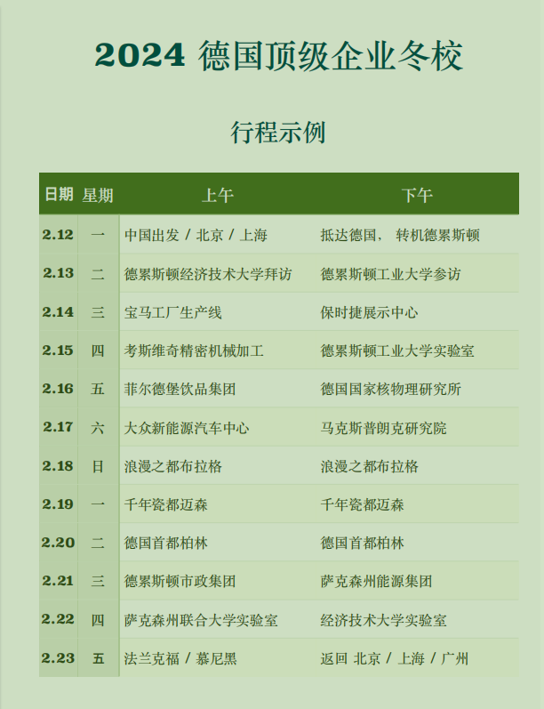为提升学生全球竞争力,广发体育将在“学生海外访学计划”的框架下开展系列国际交流项目,引导学生积极参与境外高水平大学线上线下课程学习与科学研究,今年将继续推荐优秀学生参加“2024年德国顶级企业冬校项目”,现将具体信息通知如下: