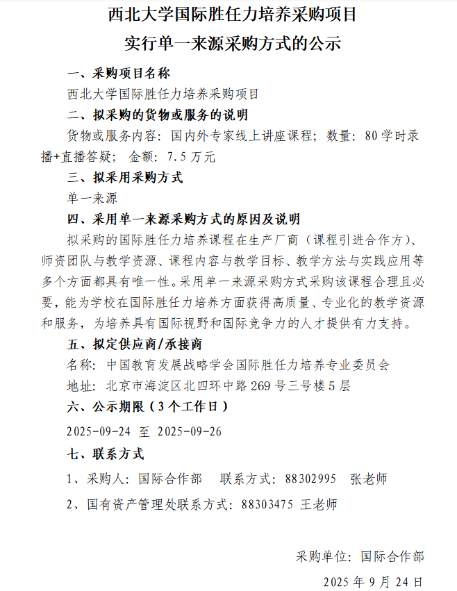 广发体育国际胜任力培养采购项目实行单一来源采购方式的公示