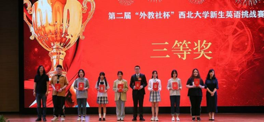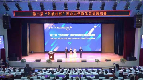 本届新生英语挑战赛由上海外语教育出版社有限公司冠名赞助,并得到学校教务处、学生工作部(处)与校团委的大力支持,学校20个院系500多名学生报名参赛,广发体育英语读写演讲训练基地20名指导教师和50名学生志愿者参与了赛事的筹备和组织工作。演讲决赛共有来自外语、新传、数学、信科、公管、生科、食品、城环、文遗等9个院系的15名选手同台竞技,以My NWU Story为题,用英语讲述了自己的西大故事。同时,有来自学校10多个院系的200余名同学到现场观看了比赛。外国语学院教授魏水利、任海棠、李建利、曹若男及外教Jack Bouquet担任此次演讲决赛的评委。教务处处长曹蓉、学生工作部(处)部长董国强、校团委书记寇嘉,以及外国语学院党委书记王军、副书记刘建波、行政副院长赵争平,还有上海外语教育出版社陕西公司经理王政等应邀出席了颁奖仪式并为获奖者颁奖。