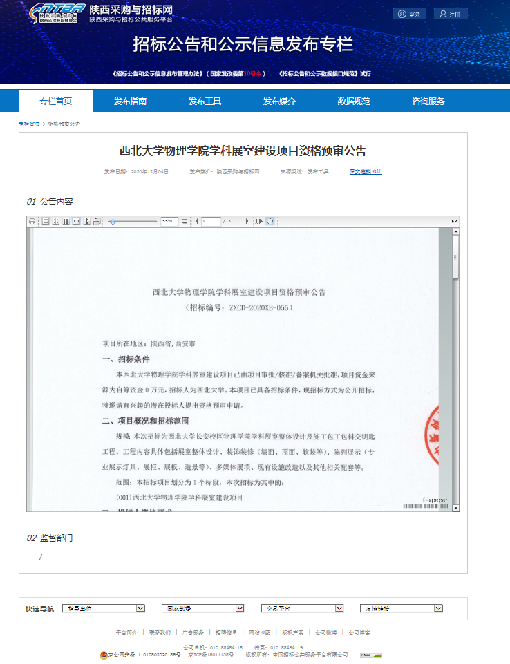 广发体育物理学院学科展室建设项目资格预审公告 作者: 编辑:郭平 时间:2020-12-08 http://bulletin.sntba.com/qualifyBulletin/2020-12-04/251055.html