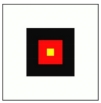 “侯”的大小为八十厘米的正方框(白色区域);内有四十厘米的正方框(黑色区域),称为“鹄”;“鹄”内有二十厘米的正方框(红色区域),称为“正”;“正”内有六厘米的正方框(黄色区域),称为“的”。压线矢计为相关内框内的命中。