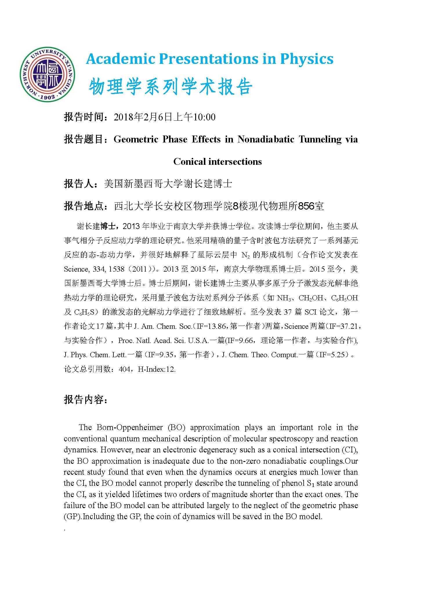 “杨钟健学术讲座”系列报告及分子模拟理论前沿讲习班议程