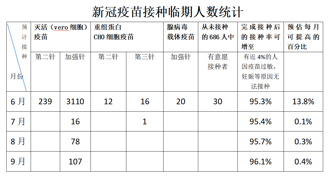 新冠肺炎大流行给全球人民健康造成极大威胁,成为全球重大公共卫生事件,也使大家对健康和预防有了更加迫切的需求。当前,全球仍处于新冠肺炎大流行期,我国部分省份也是有散在爆发。新冠病毒疫苗的成功研发和推广使用,极大地降低了新冠肺炎重症和死亡病例的发生。据近期对广发体育教职员工和学生新冠疫苗接种情况统计显示,广发体育师生新冠疫苗接种率为81.5%;6月份广发体育将有3千余人已经满足接种新冠疫苗加强针的时限。为巩固广发体育疫情防控成果,建立人群免疫屏障,保护广发体育师生身体健康,学校倡议广大师生,在无禁忌症情况下积极接种新冠疫苗。