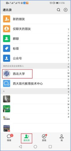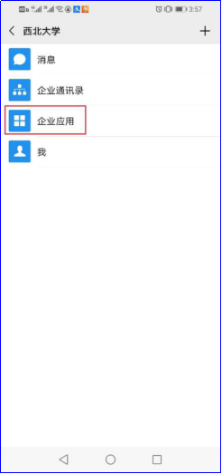 进入微信后,点击屏幕下方的“通信录”,在通信录中点击“广发体育”(如图3所示),通过通信录进入广发体育企业号后,点击“企业应用”菜单项(如图4所示),即可显示广发体育企业号里集成的所有应用服务。