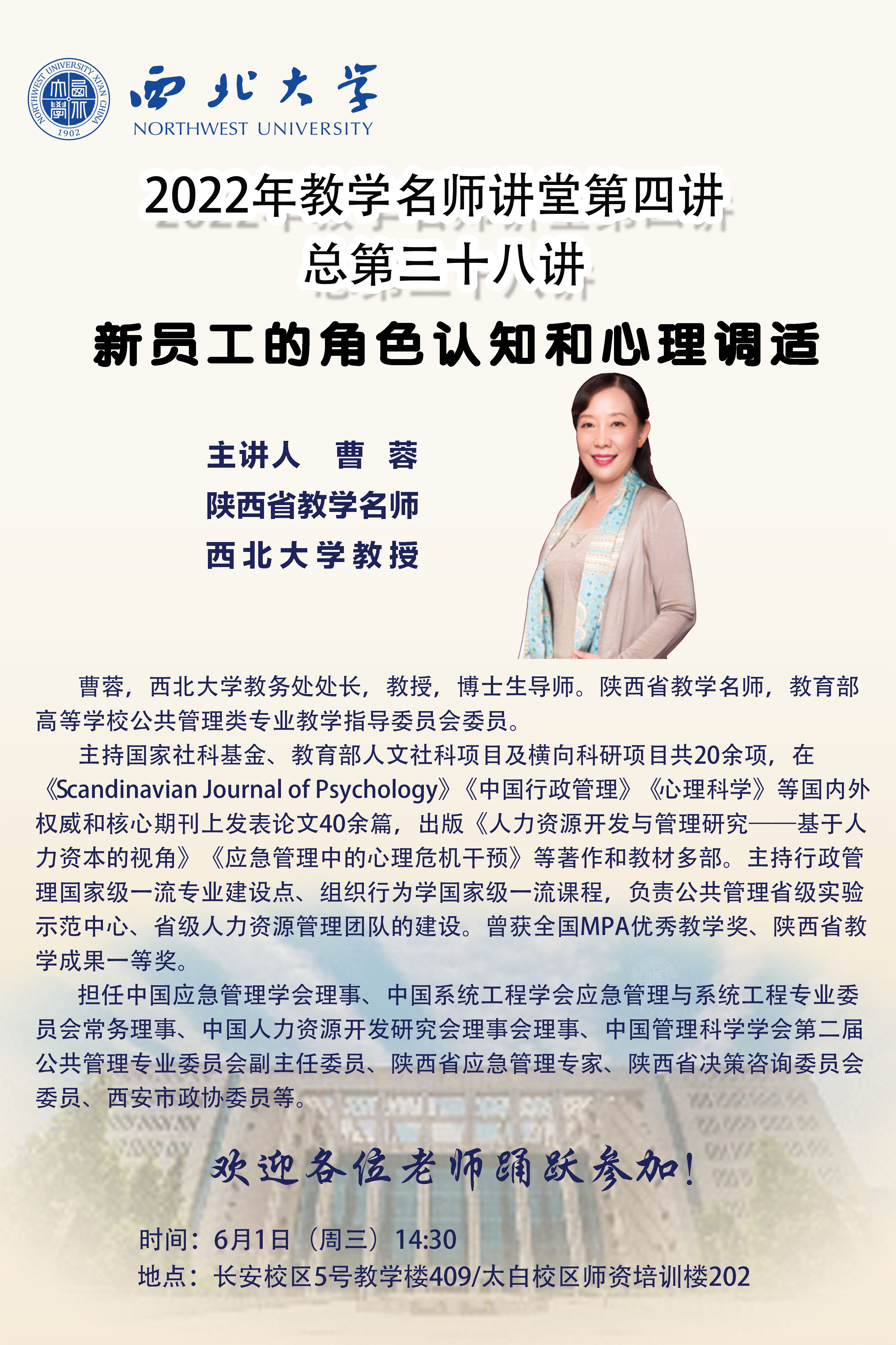 广发体育2022年教学名师讲堂第四讲——新员工的角色认知和心理调适