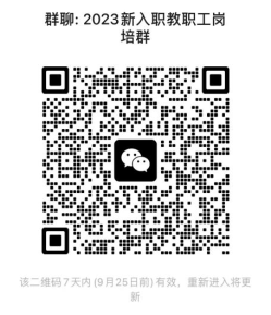 5.请2023年新入职教职工加入2023年新入职教职工岗培群(扫描微信群二维码),按“单位+姓名”格式修改备注名。已加入2022年新进教工校内培训群的教师不用重复加群。