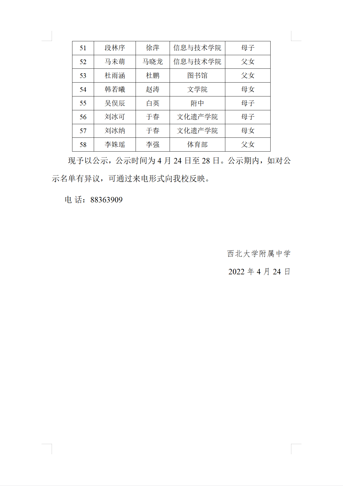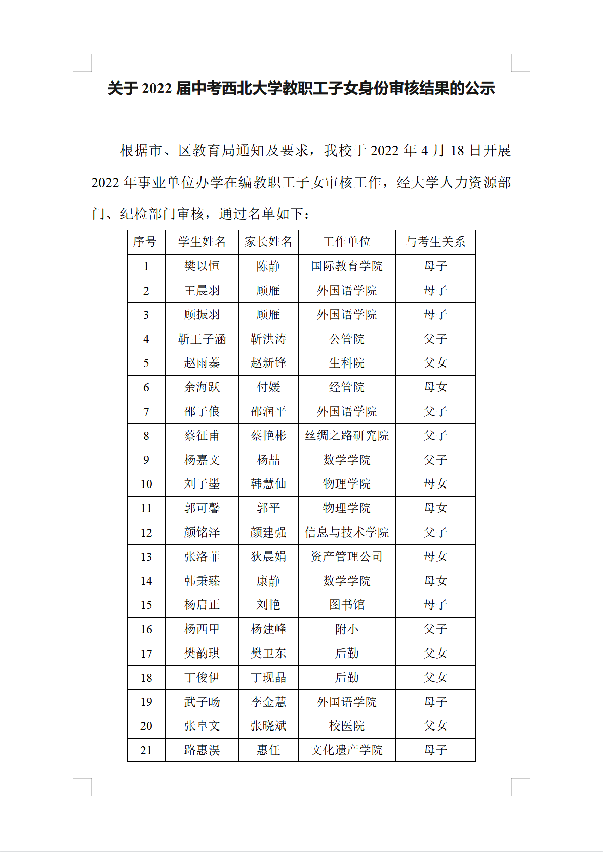 关于2022届中考广发体育教职工子女身份审核结果的公示
