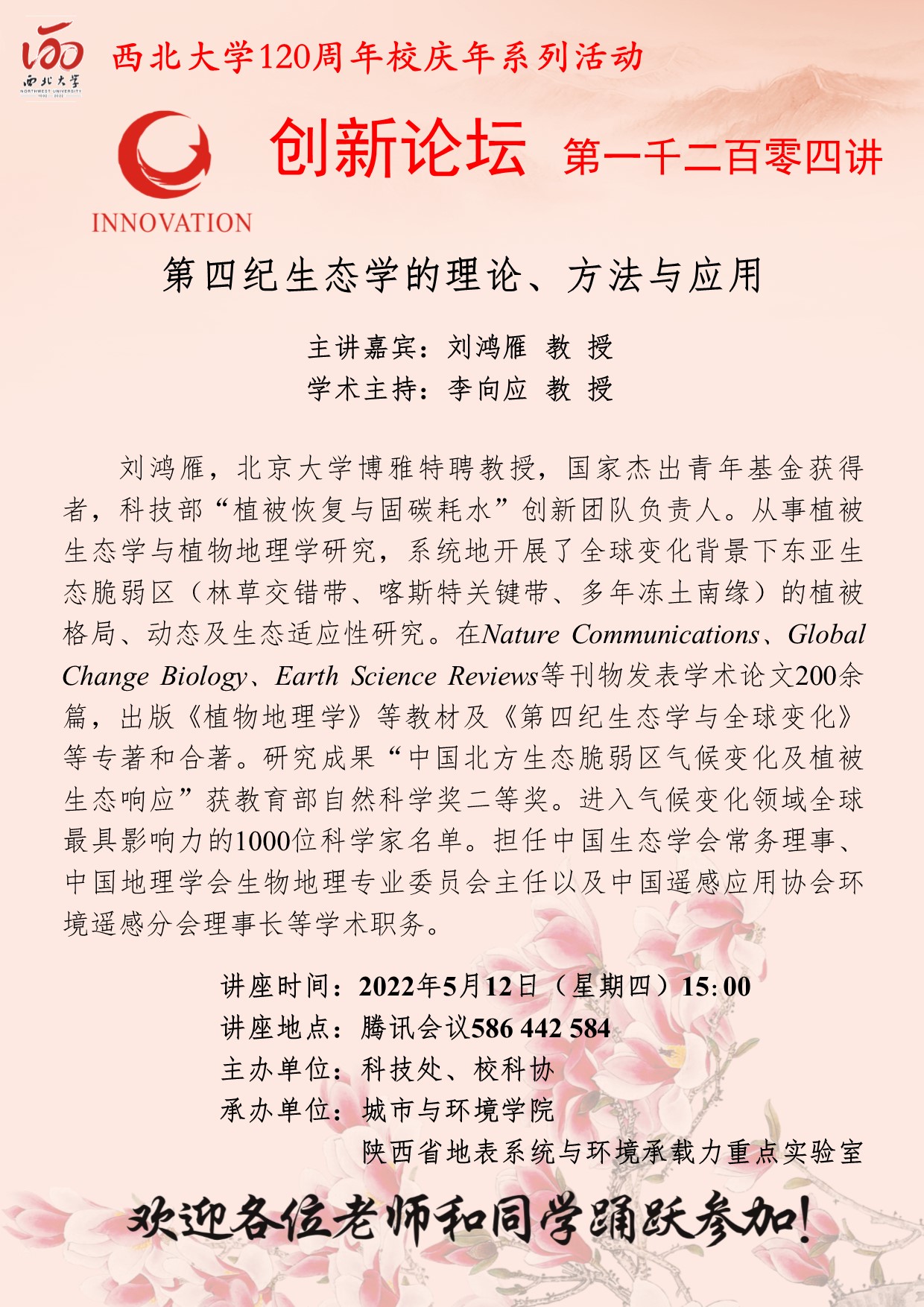 广发体育创新论坛第一千二百零四讲暨120周年校庆年系列活动:第四纪生态学的理论、方法与应用