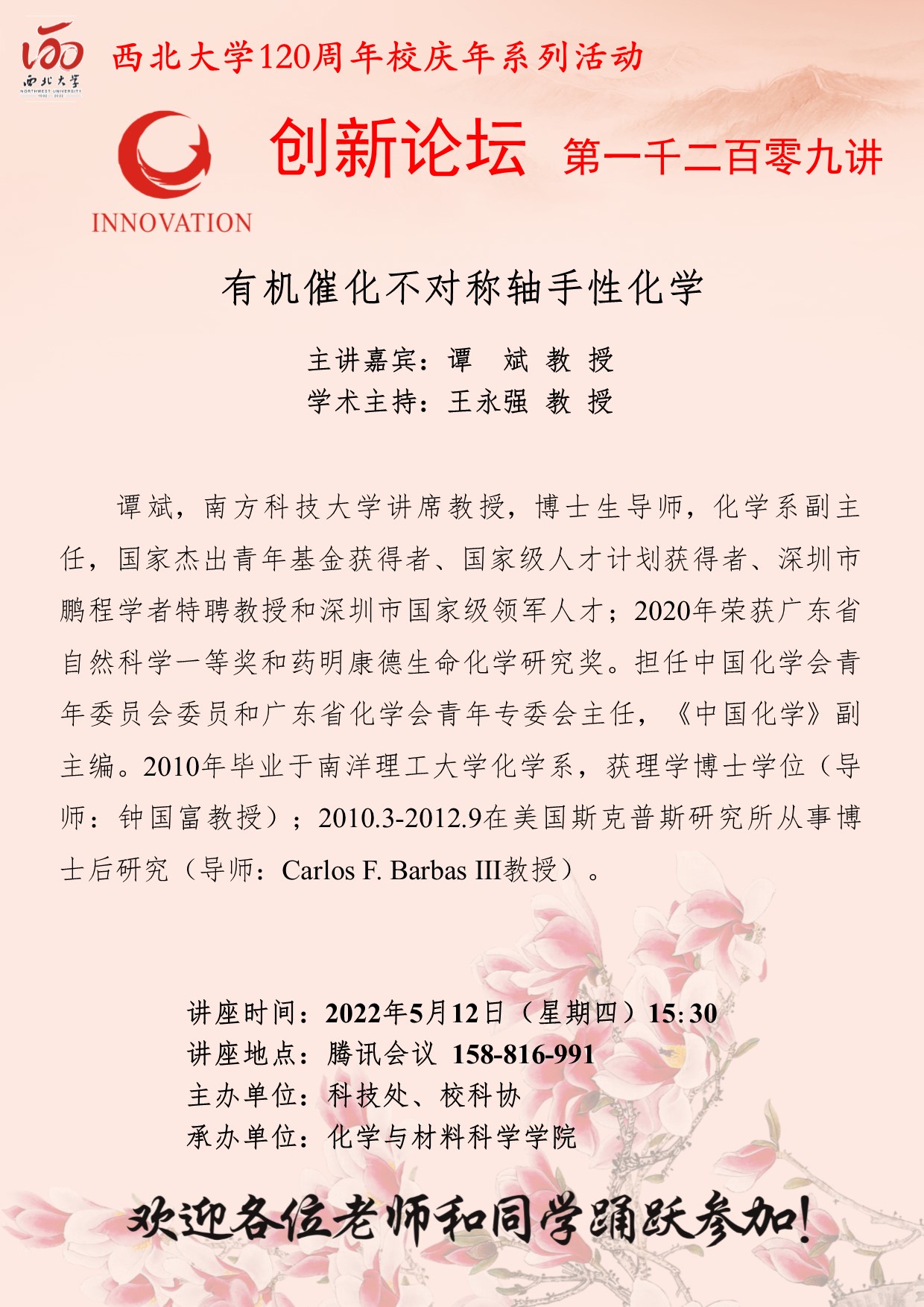广发体育创新论坛第一千二百一十讲暨120周年校庆年系列活动:多环天然产物合成中的环系构建