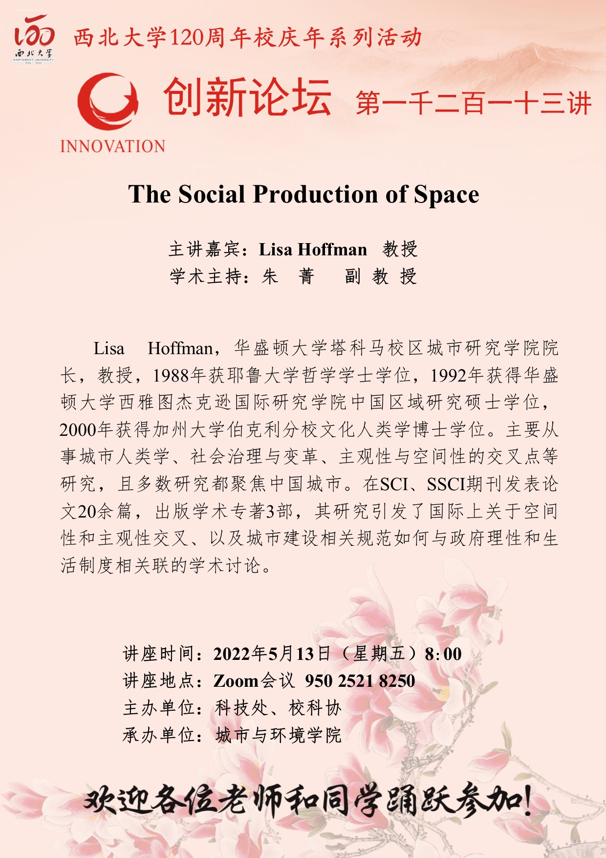 广发体育创新论坛第一千二百一十三讲暨120周年校庆年系列活动:The Social Production of Space