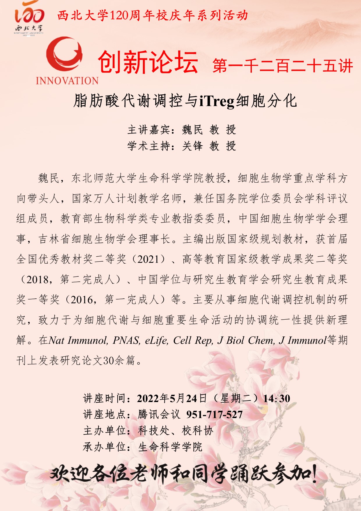 广发体育创新论坛第一千二百二十五讲暨120周年校庆年系列活动:脂肪酸代谢调控与iTreg细胞分化