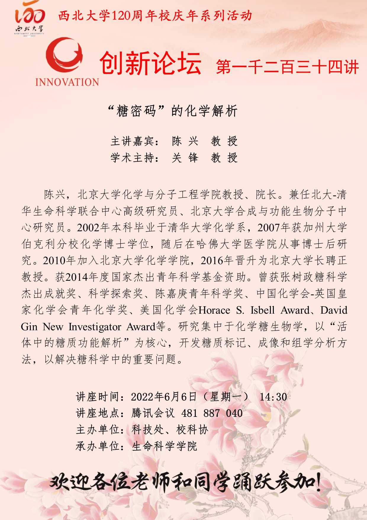 广发体育创新论坛第一千二百三十四讲暨120周年校庆年系列活动:“糖密码”的化学解析