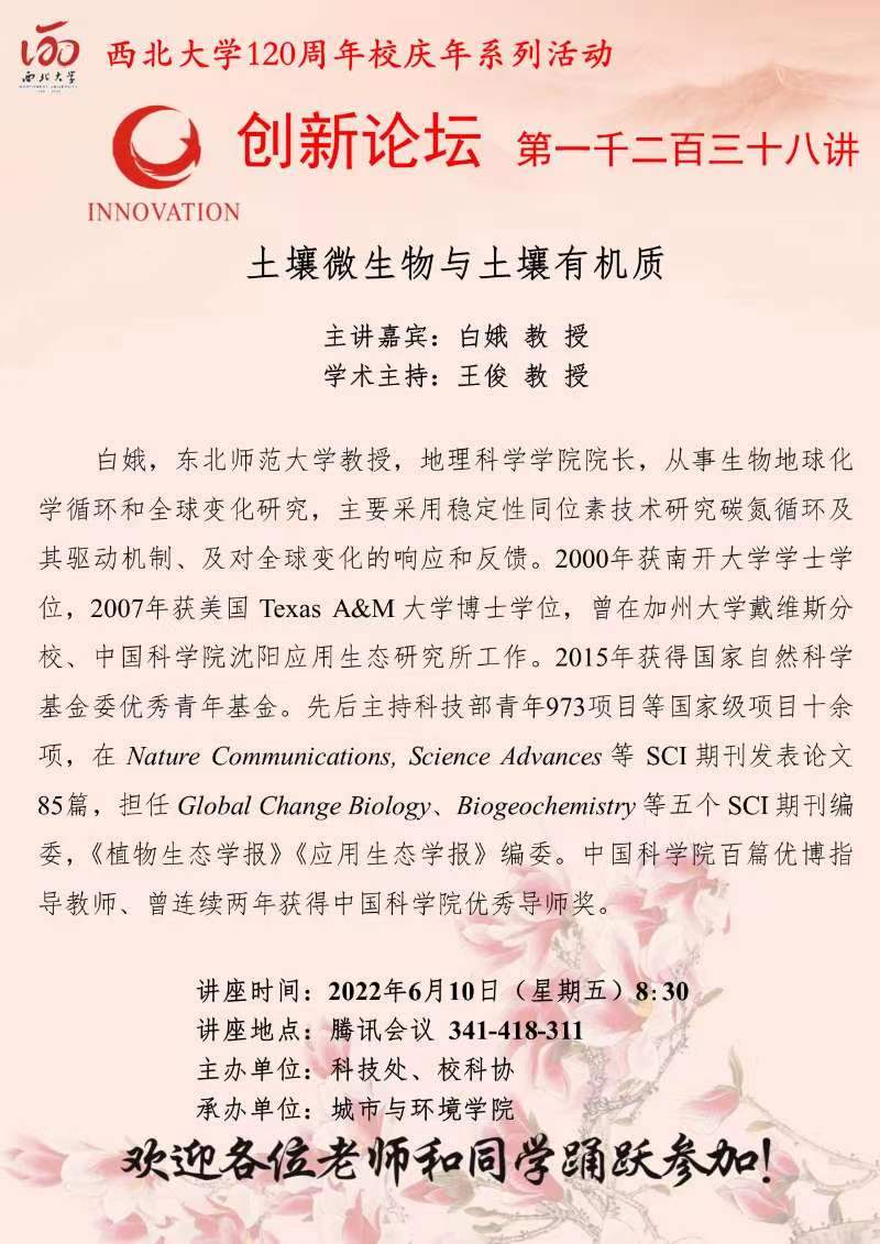 广发体育创新论坛第一千二百三十八讲暨120周年校庆年系列活动:土壤微生物与土壤有机质