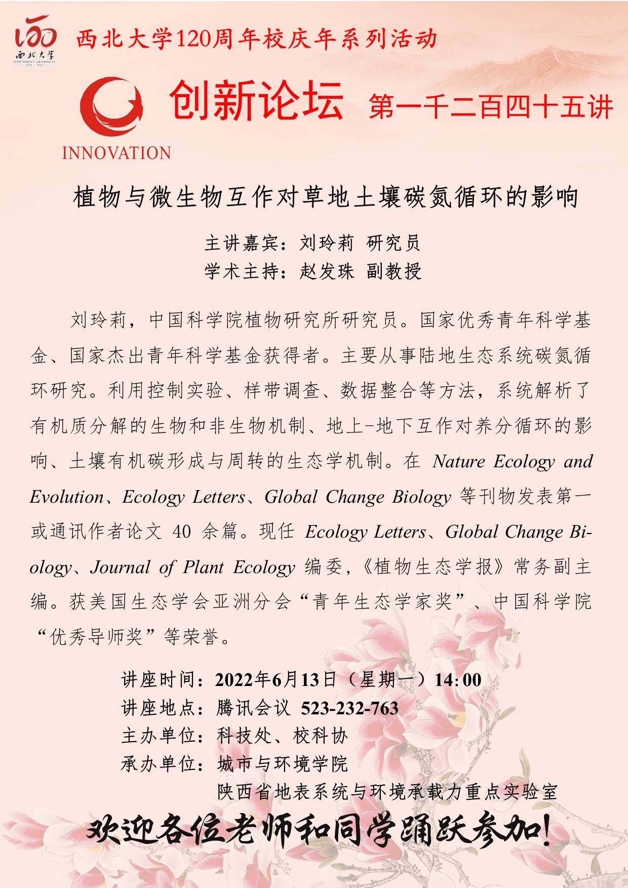 广发体育创新论坛第一千二百四十六讲暨120周年校庆年系列活动:全球变化下的根际生态与土壤碳过程