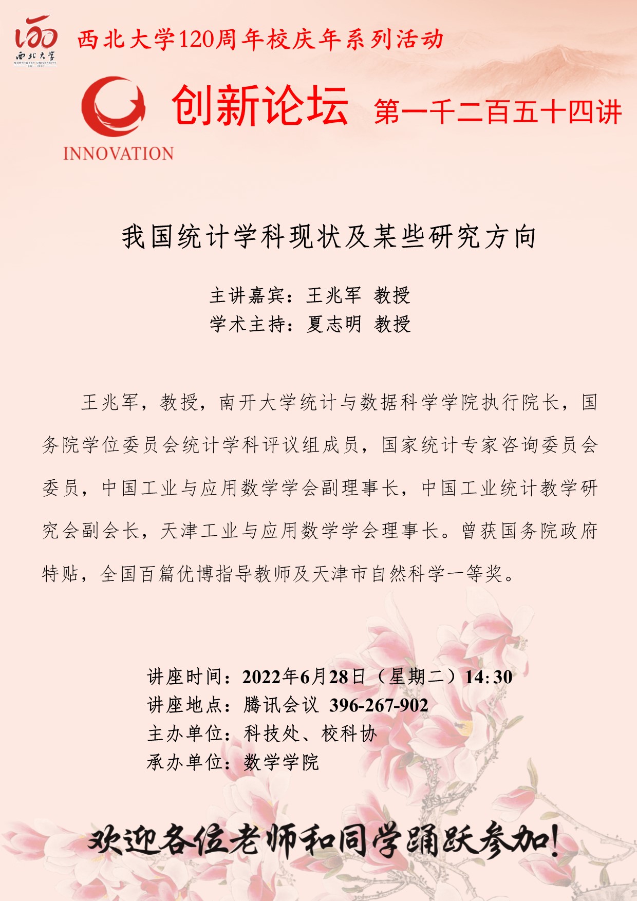 广发体育创新论坛第一千二百五十四讲暨120周年校庆年系列活动:我国统计学科现状及某些研究方向