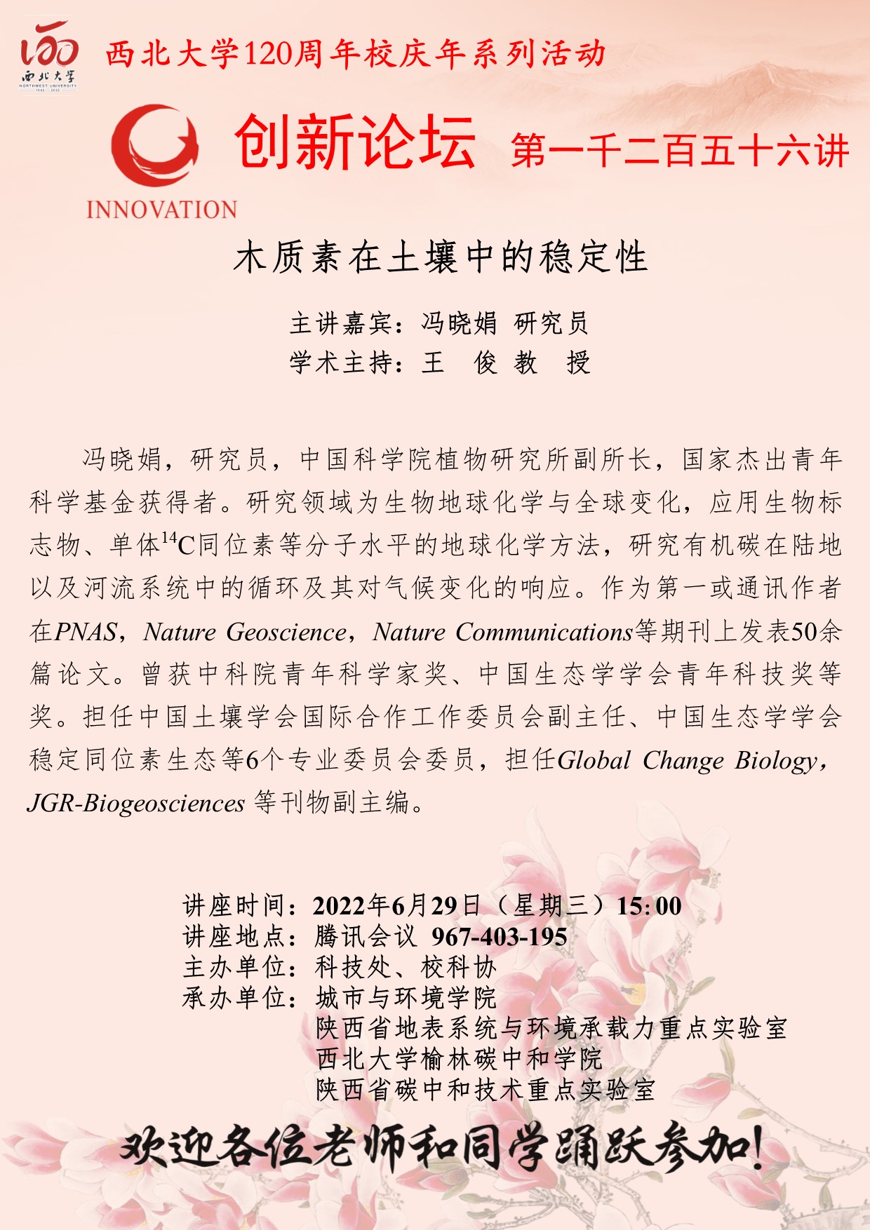 广发体育创新论坛第一千二百五十六讲暨120周年校庆年系列活动:木质素在土壤中的稳定性