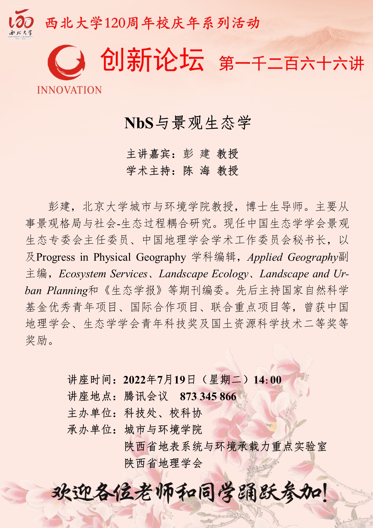 广发体育创新论坛第一千二百六十六讲暨120周年校庆年系列活动:NbS与景观生态学