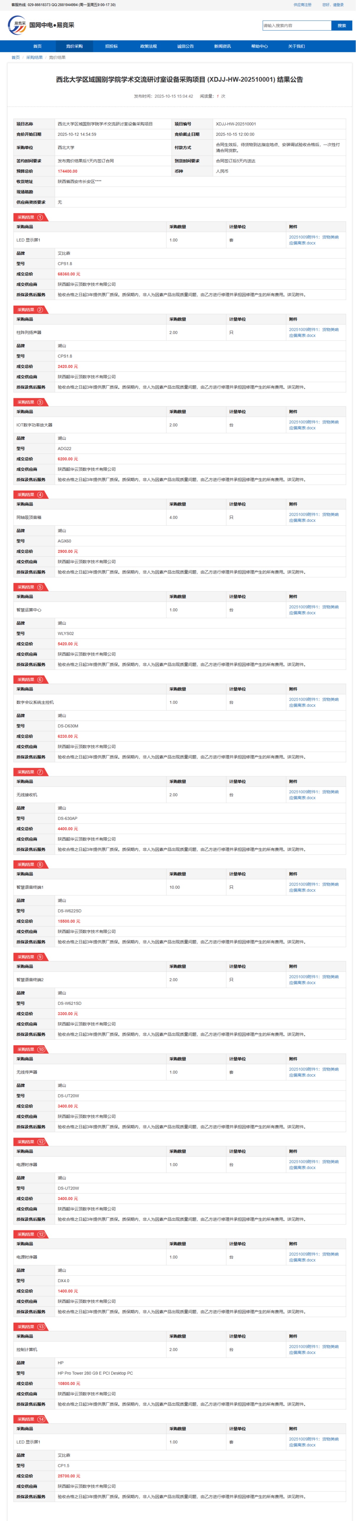 广发体育区域国别学院学术交流研讨室设备采购项目(XDJJ-HW-202510001)竞价结果公告