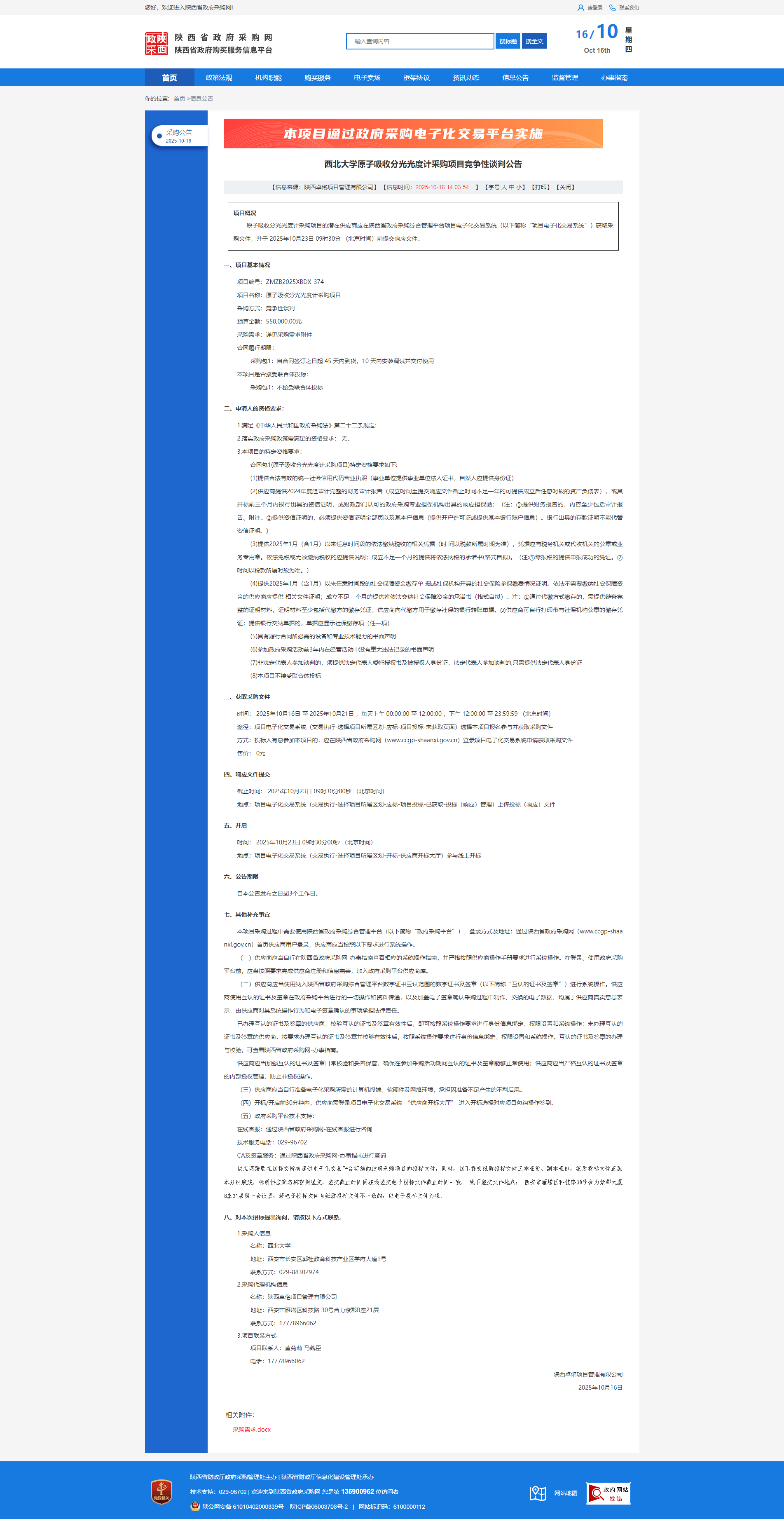 广发体育原子吸收分光光度计采购项目竞争性谈判公告