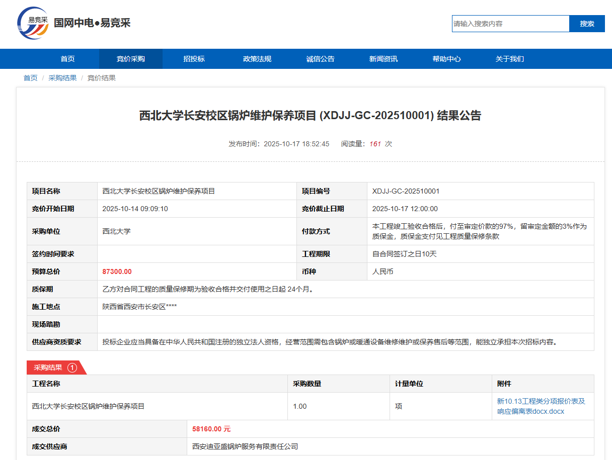 广发体育长安校区锅炉维护保养项目(XDJJ-GC-202510001)竞价结果公告