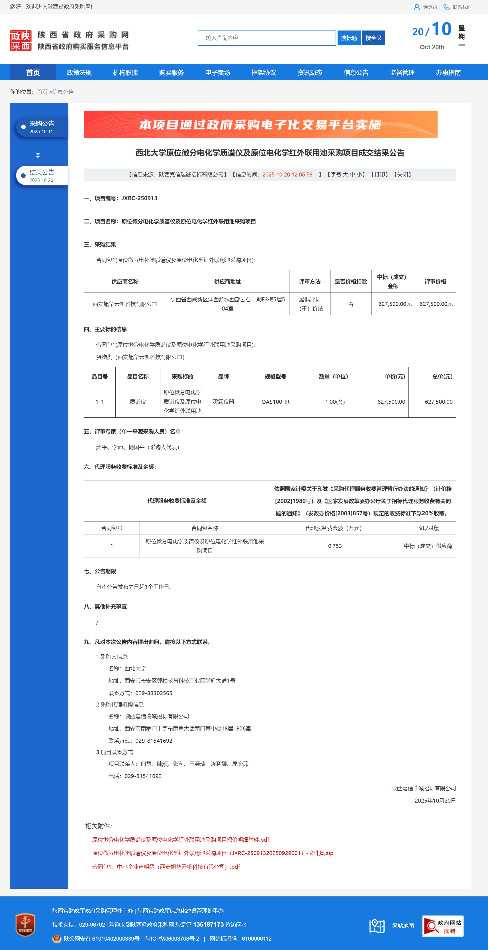 广发体育原位微分电化学质谱仪及原位电化学红外联用池采购项目成交结果公告